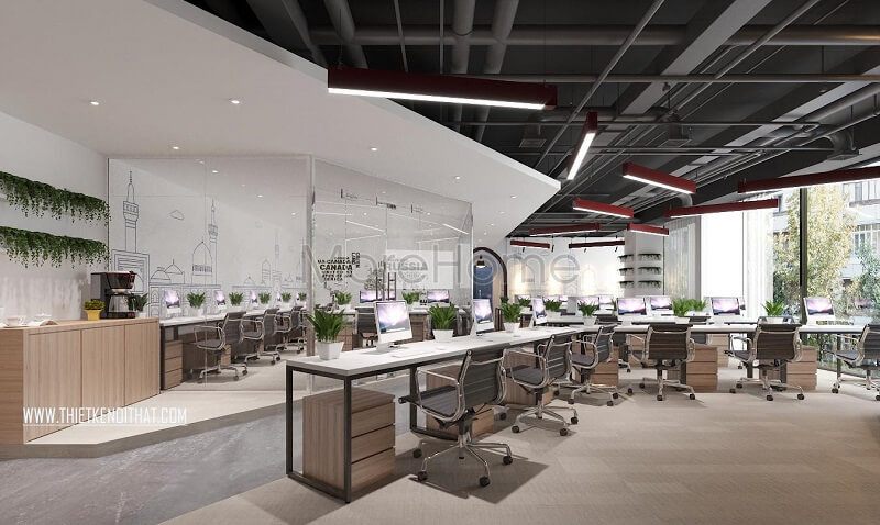 . Tạo ra một không gian làm việc độc lập nhưng vẫn gắn kết với nhau qua các bộ phân được phân bố trong một tổng thể bằng cách sử dụng vách kính cường lực.