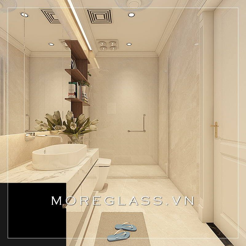 Bạn đang muốn sở hữu một phòng tắm nhỏ gọn với nội thất cơ bản và thiết bị vệ sinh hiện đại, kết hợp với gương ốp tường không bo viền, tường đơn sắc để tạo nên bức tranh sang trọng và ấn tượng.