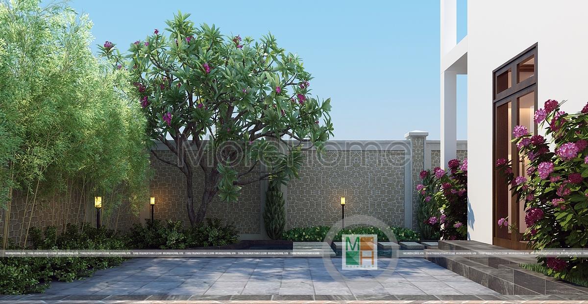 Không chỉ nội thất mà không gian ngoại thất của căn biệt thự này cũng khiến bạn không khỏi ngạc nhiên. Ngay bên cạnh phòng ăn là khu vực thư giãn ngoài trời với bộ bàn trà ấm cúng dưới mái hiên có dàn dây leo, cỏ cây hoa lá xanh mát.