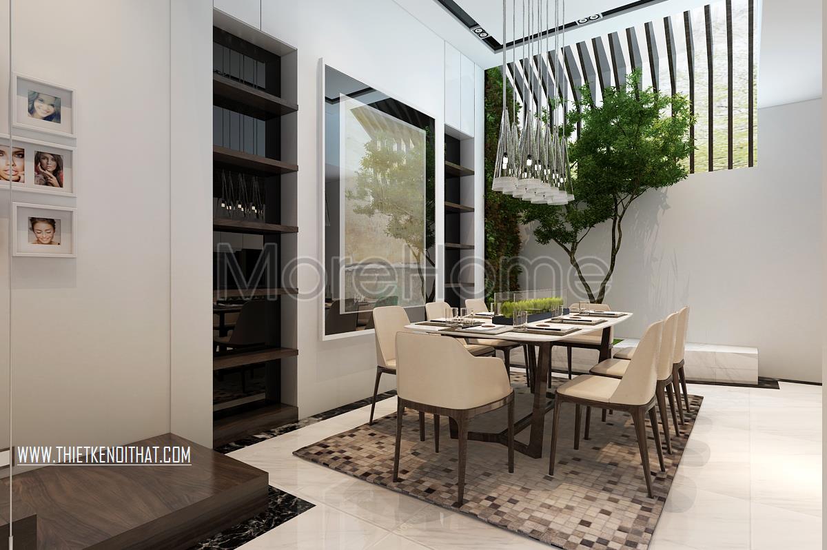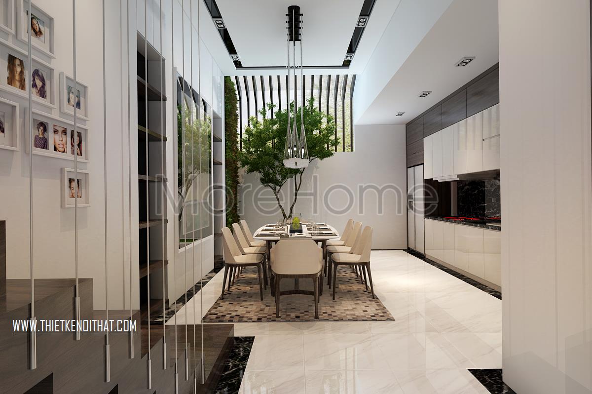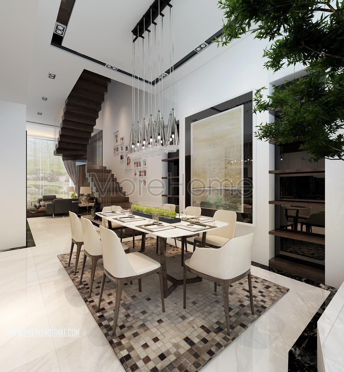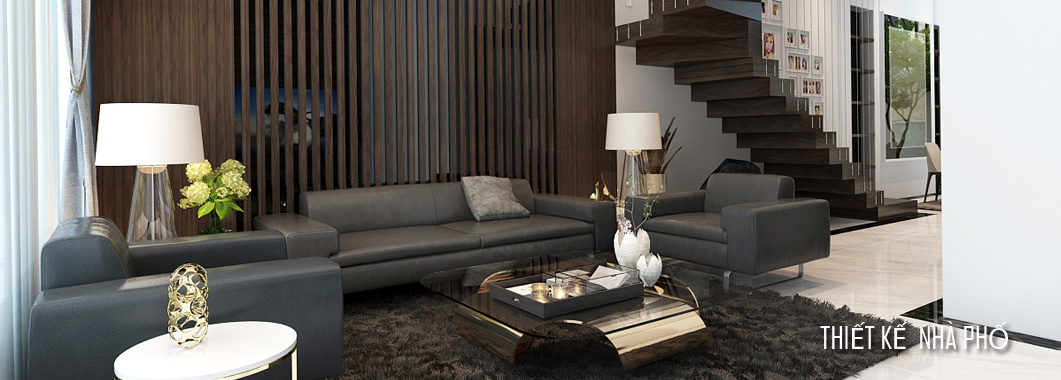 Thiết kế nội thất nhà phố cao cấp, sử dụng chât liệu gỗ óc chó cao cấp trong thi công nội thất.
