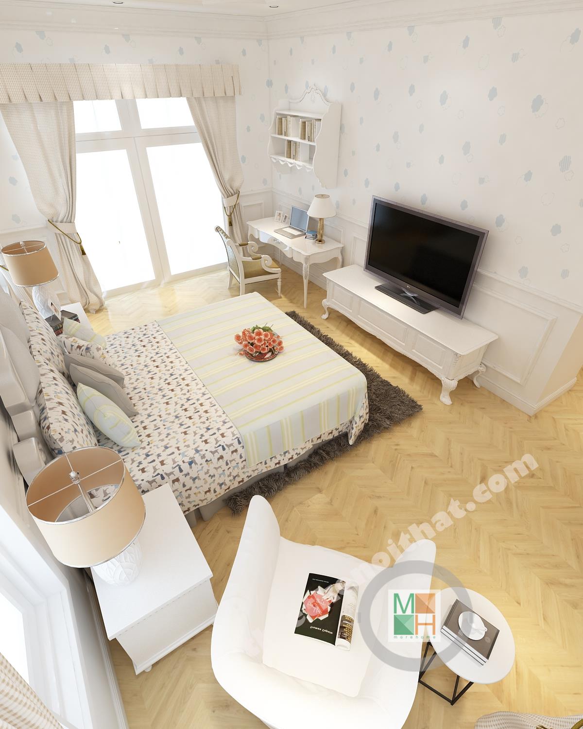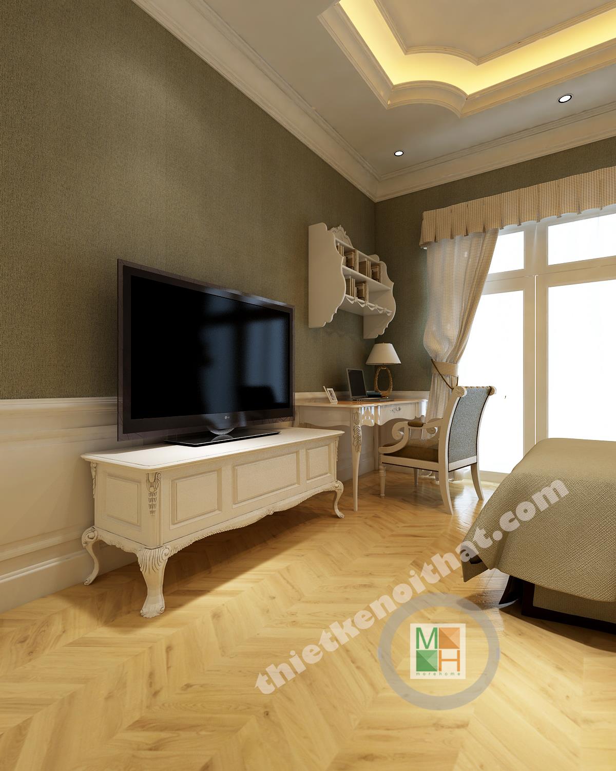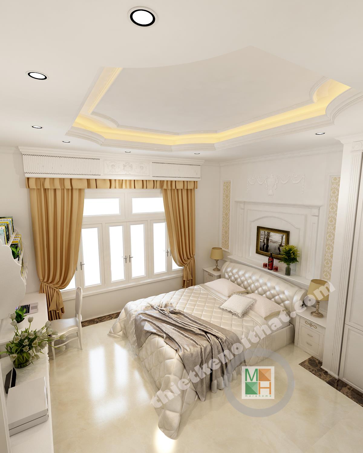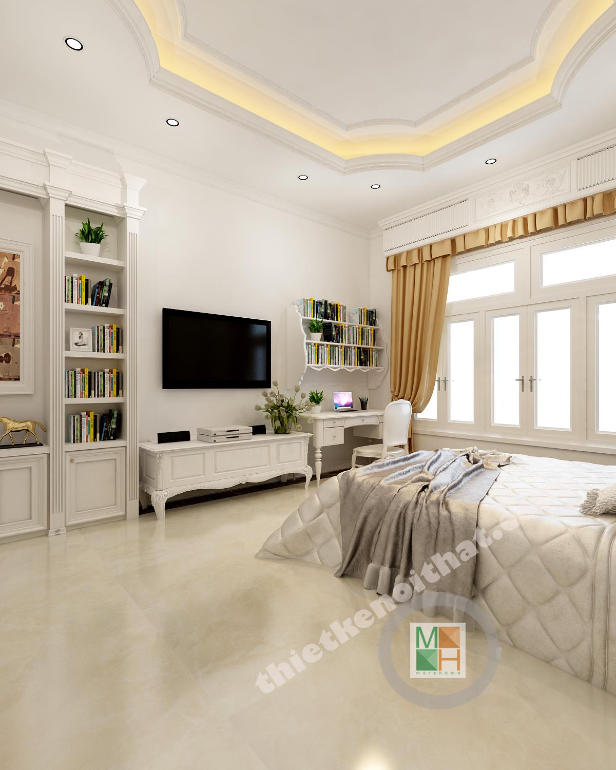 Dựa trên nhu cầu thực tế của chủ đầu tư, KTS MORE HOME đã thiết kế nội thất căn biệt thự với không gian hoàng gia, phong cách tân cổ điển được vận dụng một cách nhuần nhuyễn dựa trên hiện trạng sẵn cũ của ngôi nhà. Không gian sang trọng, nội thất đẹp nhưng vẫn phục vụ tối đa nhu cầu sử dụng của gia chủ là mục tiêu mà MORE HOME luôn đề ra cho từng ngôi nhà.